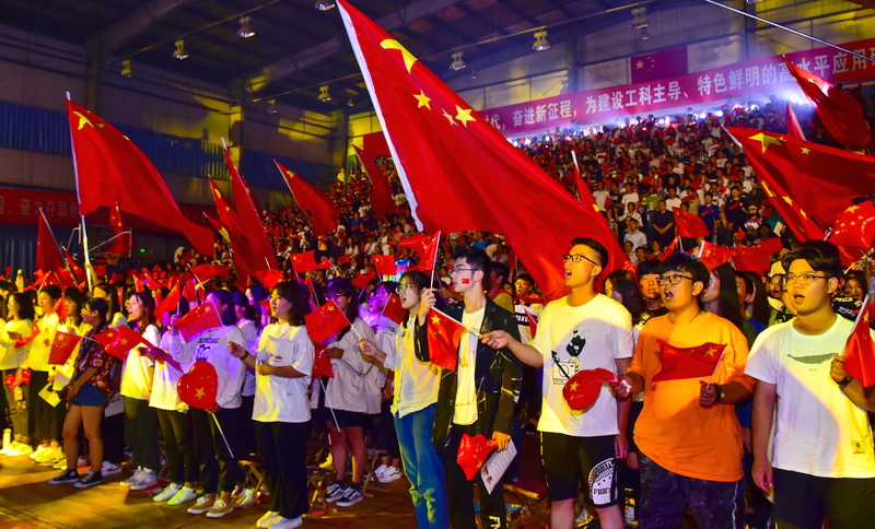 节目精彩纷呈,有的让人兴致盎然,有的让人感动落泪,有的让人激情澎湃,赢得现场观众阵阵掌声……师生在热烈的氛围感染下,全场起立合唱《歌唱祖国》,师生们挥舞着手中的五星红旗,表达对祖国母亲最真挚的生日祝福,唱出对新中国成立70周年的美好祝愿,用青春告白祖国,现场汇成一片红色的海洋。