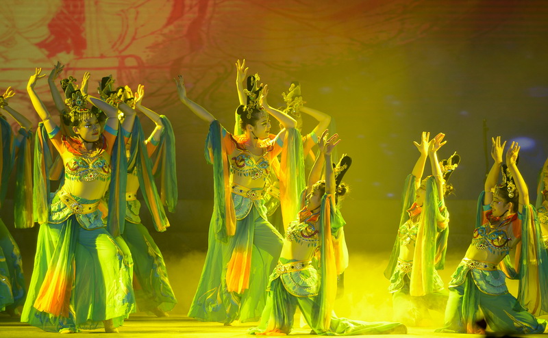 演出结束后,罗公利、姚庆国、尹华、李克周、陈涛等走上舞台,与演员握手、合影留念。