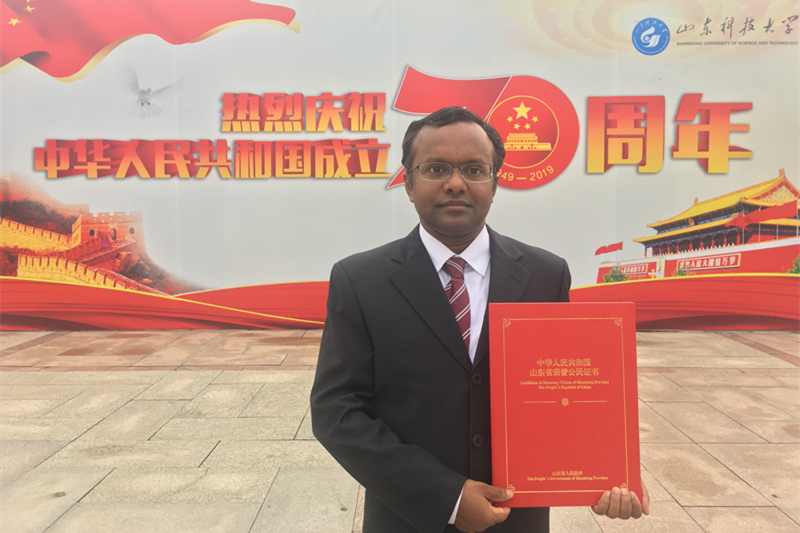 9月29日,“山东省荣誉公民”授荣仪式在济南举行,省委书记刘家义,省委副书记、省长龚正出席仪式。ac米兰官网中文网站电信学院印度籍专家刘山教授受邀参加授荣仪式。仪式上,刘家义为刘山颁发荣誉证书。