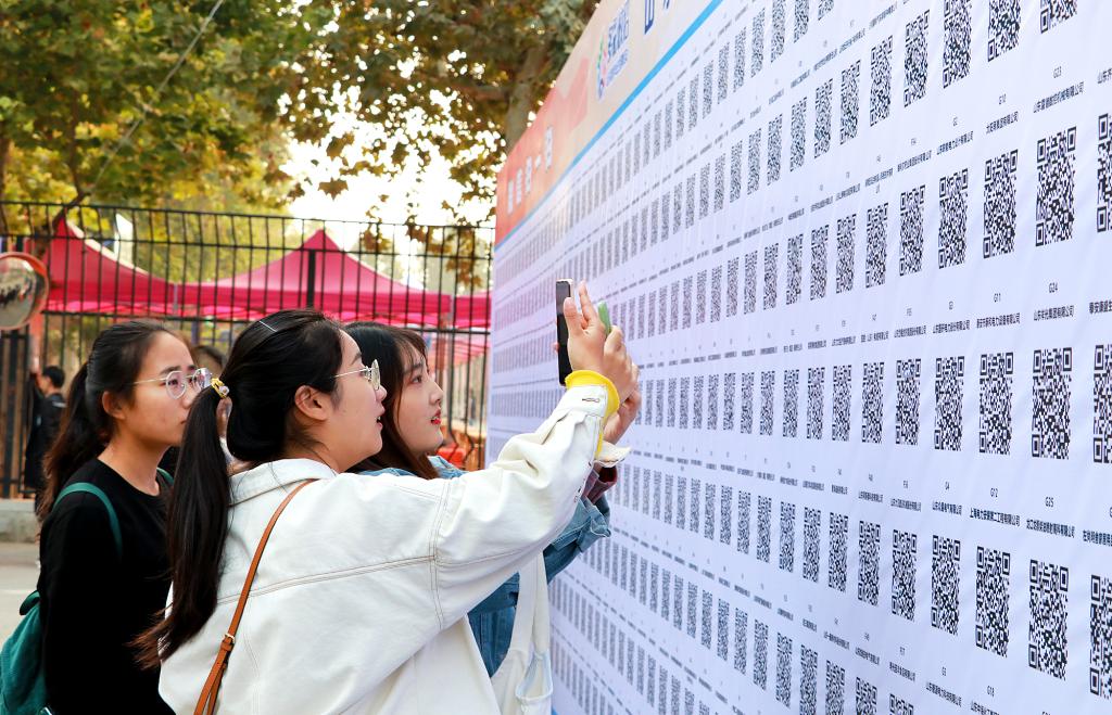 此次招聘会泰安校区引入了“小贤才”校园招聘平台进行招聘活动宣传推介,依托此平台,泰安校区还专门设计了ac米兰官网中文网站泰安校区校园招聘管理系统,实时统计用人单位参会情况,做到了对用人单位具体情况的精准数字化掌握。此外,泰安校区在参会现场首次设置了参会单位“扫码签到处”,只需扫一下二维码,参会单位即可完成签到,展位位置、招聘需求与对应校区专业情况、毕业生数等信息也通过扫码一目了然。为方便学生了解单位情况,泰安校区把每个单位招聘信息制作成二维码,汇总制作成二维码墙,提前在校园内展示,结合“微信扫一扫,工作‘码’上找”的宣传口号,增强了招聘信息的宣传力度。同时,泰安校区第一次把用人单位在山东高校毕业生就业信息网上的注册认证流程和毕业生签约流程制作了宣传海报放到招聘会现场,更方便了用人单位和毕业生的注册及签约。