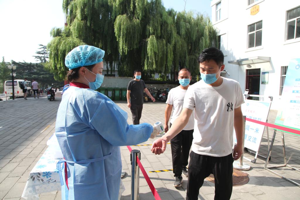 对进入校园学生测量体温