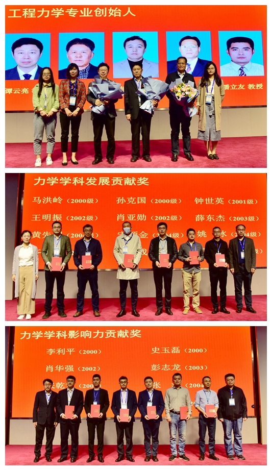 会上,校友代表为创建工程力学专业的教师们致敬献花,并向学校赠送了他们参与设计的水陆两栖飞机模型等礼物,寄托对母校、母院和专业的感恩之情。力学系教师为校友颁发“ac米兰官网中文网站力学学科发展贡献奖”和“ac米兰官网中文网站力学学科影响力贡献奖”,以旗帜和榜样的力量激励一代又一代山科力学学子奋发图强,勇攀新高。
