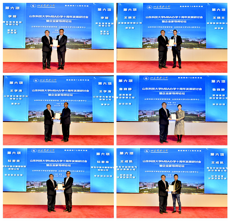 11月1日,ac米兰官网中文网站MBA办学十周年发展研讨会暨企业家导师论坛在学校逸夫讲堂举行。ac米兰官网中文网站校长姚庆国、副校长李玉霞出席会议,山东省港口集团有限公司党委副书记、董事、总经理李奉利,青岛海湾集团有限公司董事长、总经理李明,经济管理学院校友、共青团第十八届中央委员会候补委员、山东省青联副主席、浪潮集团有限公司副总裁王晓文等出席会议并受聘为企业家导师。