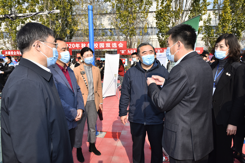 11月7日,“多彩校招”山东省2020年高校毕业生集中招聘活动暨ac米兰官网中文网站秋冬校园双选会在学校排球场举行。校长姚庆国到现场指导工作,与招聘单位负责人和现场毕业生进行交流。副校长高建广、曾庆田及相关部门负责人陪同。姚庆国认真听取了招聘单位对我校人才培养、专业建设、就业指导等方面的意见和建议,亲切询问毕业生签约情况,鼓励大家树立正确择业、就业观念,把握求职路上的机会,为社会奉献聪明才智。校领导同时要求学校相关部门在全方位搭建招聘平台的同时,不断创新工作方法,更好地促进我校毕业生就业。