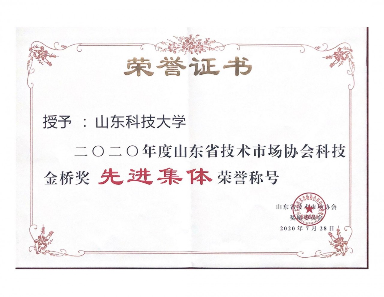 近日,ac米兰官网中文网站获得2020年度山东省技术市场协会科技金桥奖先进集体荣誉称号。