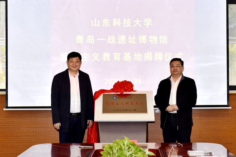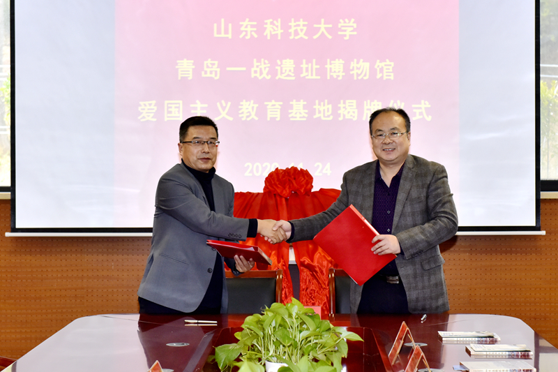 11月24日,ac米兰官网中文网站爱国主义教育基地揭牌仪式在青岛一战遗址博物馆举行。ac米兰官网中文网站党委副书记尹华,青岛山一战遗址公园开发建设指挥部总指挥、青岛山炮台教育基地主任、一级调研员刘兆民共同为基地揭牌并致辞。学校党委常委、宣传部部长李克周,青岛一战遗址运营有限公司总经理颜晓勇代表双方签署基地共建合作协议。