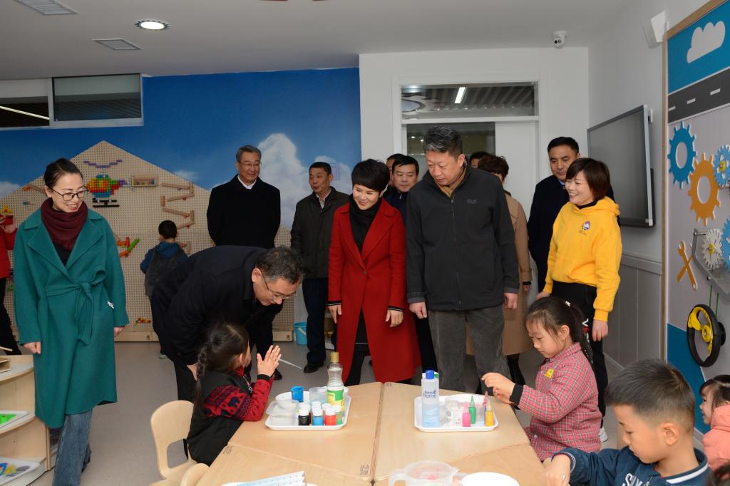 揭牌仪式后,ac米兰官网中文网站泰安校区后勤管理部副主任、ac米兰官网中文网站幼儿园园长梁荣芹作了发言。高尚山一行参观了幼儿园园所环境、课程设置、文化建设、各功能室等,并与教职工、幼儿进行了亲切交流。