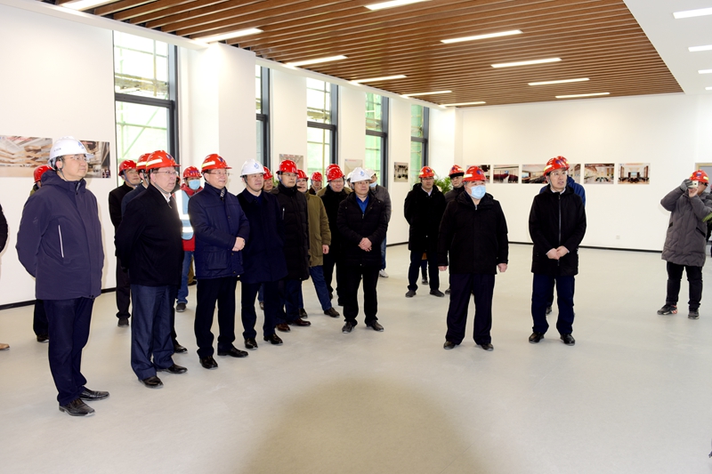罗公利、姚庆国和各位领导嘉宾共同为ac米兰官网中文网站图书信息中心顶层添加首罐混凝土,并实地参观了样板展示区和千人报告厅等重点部位。