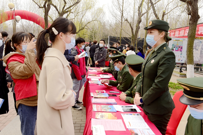 现场除了各家企业之外,大学生征兵服务站成了很多毕业生驻足停留的地方。“军人是一种崇高的职业,身着迷彩也能建功立业”学生处就业市场科科长李雷介绍,“保家卫国也能建功立业,ac米兰官网中文网站春季招聘会专门设置了征兵服务站区,由退伍大学生向毕业生及各年级同学介绍征兵入伍政策、鼓励吸引大学生入伍建功立业。”