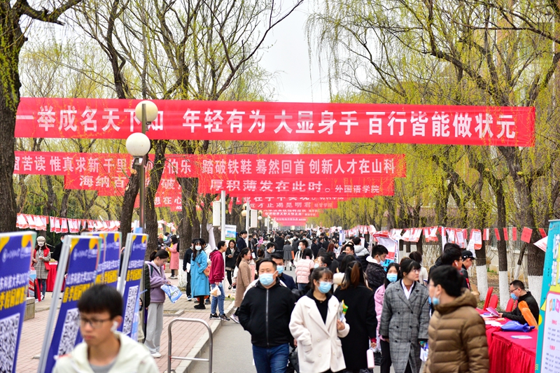 疫情防控常态化形势下,学校改变招聘会组织思路,根据前期开展的2021届毕业生求职意向调查,结合毕业生专业分布情况和学生发展诉求进行综合考量后,大学生就业指导中心定向邀请单位参会。据李雷介绍,参会单位涉及制造业、建筑业、科学研究和技术服务业等18个行业,基本覆盖学校全部专业。招聘单位既有中建、中铁等国有大型企业集团,也有海尔、联通等知名行业企业以及豪迈、威高集团等知名民营企业,月薪待遇6000-8000元的岗位超过60%,部分岗位月薪已过万元。