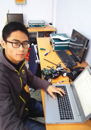 这是朱栋栋准备2017年第十二届全国大学生“飞思卡尔”杯智能汽车竞赛时的生活写照。朱栋栋的舍友开玩笑道:“他比赛前的一个学期里,实验室变成了他的‘宿舍’,智能车是他的‘舍友’,他如果不在实验室,就是在去实验室的路上。”