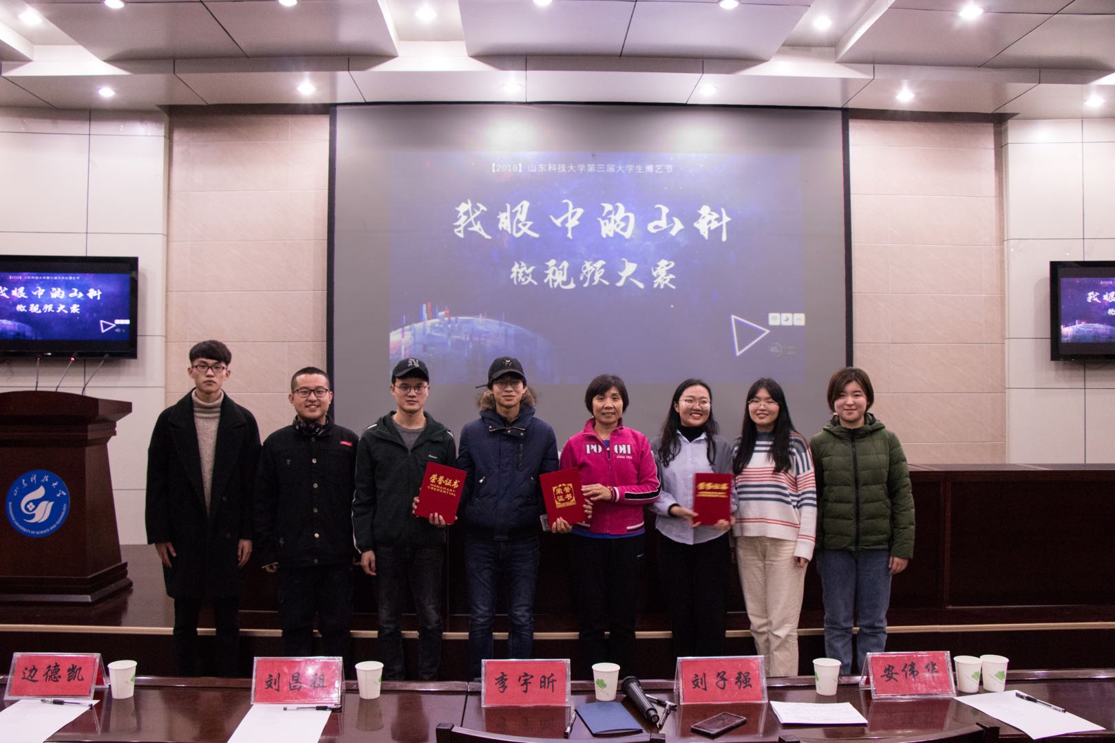 宗新宇(左四)的作品分获2018学校微视频大赛一二三等奖