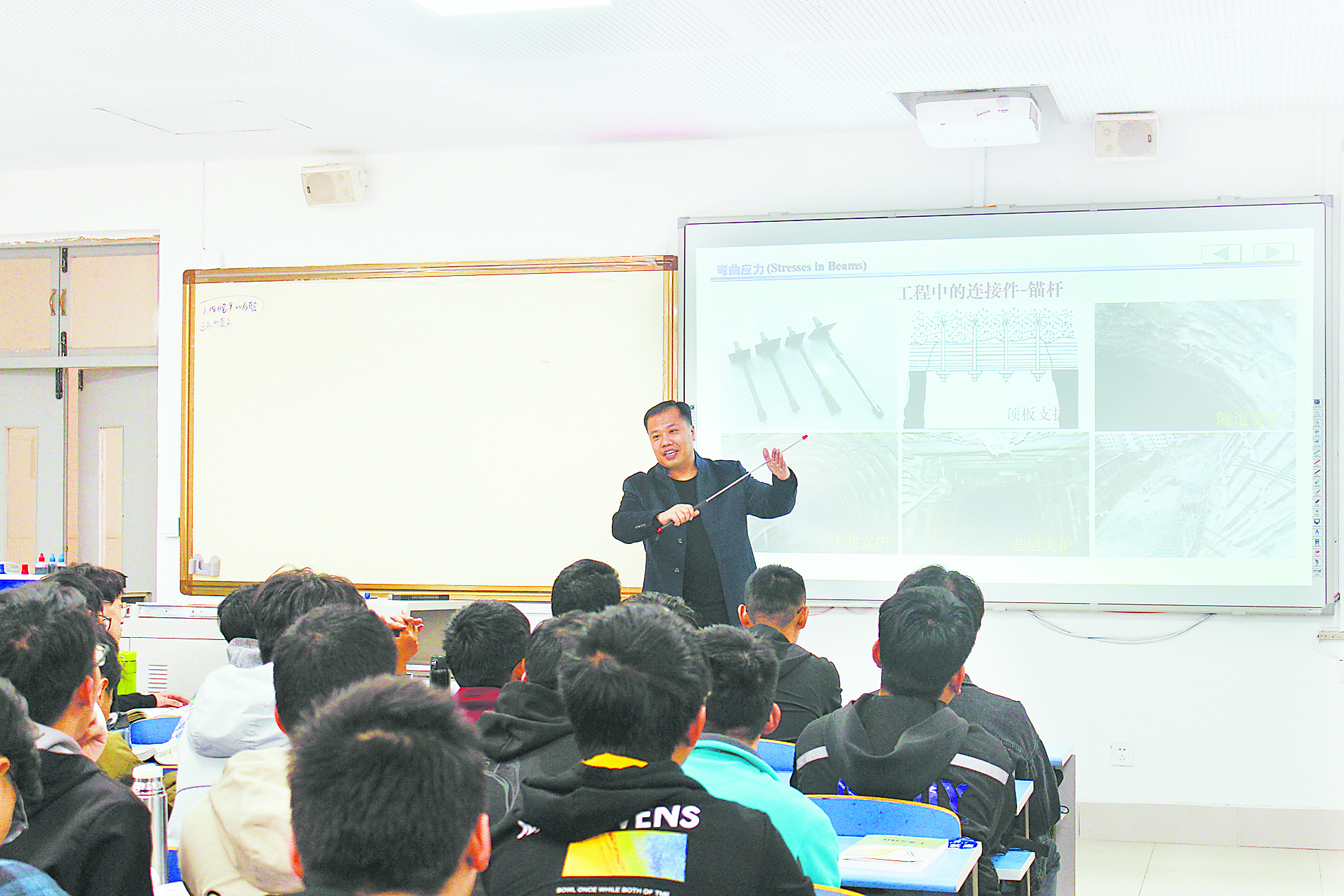 赵增辉认为,科研是源、教学是流,教学与科研是高校教师发展和教书育人两条相互依存、相互促进的生命线。从教以来,他一心开辟“源头活水”,致力“源远流长”。从一名机械出身的硕士研究生转变为岩土工程博士学位获得者,从一名岩土工程门外汉逐渐成为该领域前沿方向的参与者与探索者,赵增辉用了三年。作为矿业开发与环境保护“山东省高校黄大年式教师团队”和“山东青年创新突击队”核心成员,他敢于突破与创新,勇攀科研高峰,近年来立足矿山绿色开采和山东半岛地下工程开发、地铁隧道建设等领域,深挖行业关键力学问题,主持国家自然基金面上项目、省基金、中国博士后基金等各类纵向项目10余项,获省部级科技进步一等奖2项,三等奖2项,首位或通讯作者在国内外高水平刊物发表论文60余篇(其中SCI收录30多篇),出版著作2部。这些科研成果为基础力学课堂教学提供了丰富的素材。