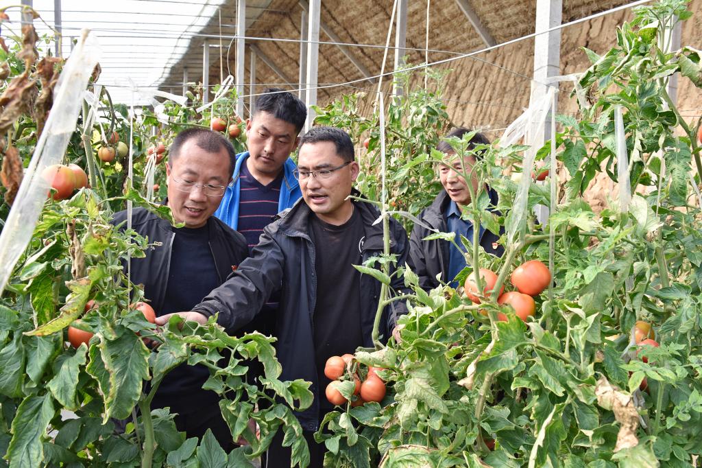 王靖磊与村民学习蔬菜大棚种植技术