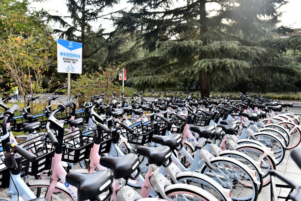 “对于校内‘僵尸车’,安全管理处每年都定时专门组织人员清理,在所有停放车辆把手上贴上提示条,过一段时间再检查,没有及时撕掉的就很可能是‘僵尸车’。所有这样的车辆都定点堆放,以备学生查找,但每年依旧会有大量新自行车涌进校园,而被遗弃的车子也会继续增加,既不利于校园美化,也不利于资源节约,还存在一定的安全隐患。因此,为建设节约型现代化校园,倡导绿色共享交通理念,方便师生校园出行,经立项招标等程序,安全管理处引进社会优质服务资源,在校内多处固定停放点投放共享单车。”安全管理处处长申玉三告诉记者,定期清理并非处理“僵尸车”的最佳办法,而校园内共享单车的使用却可以从源头上减少私人自行车的购入,也会避免“僵尸自行车”的形成和累积。