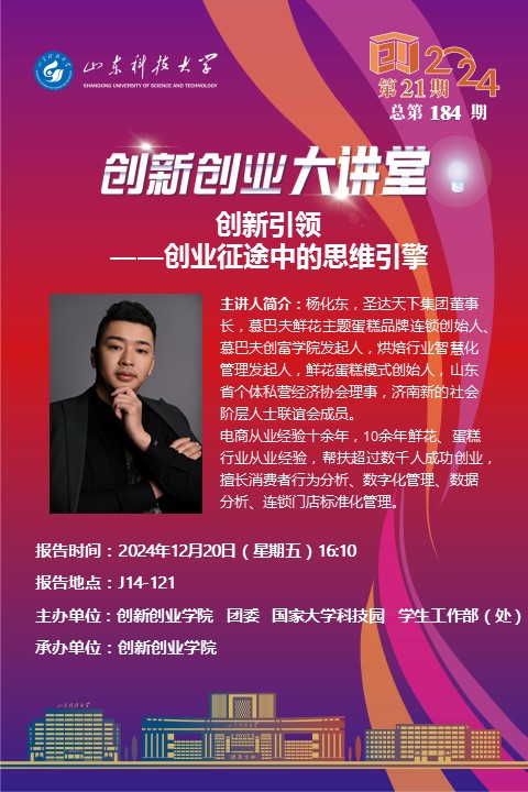 创新创业大讲堂2024年第21期:创新引领——创业征途中的思维引擎
