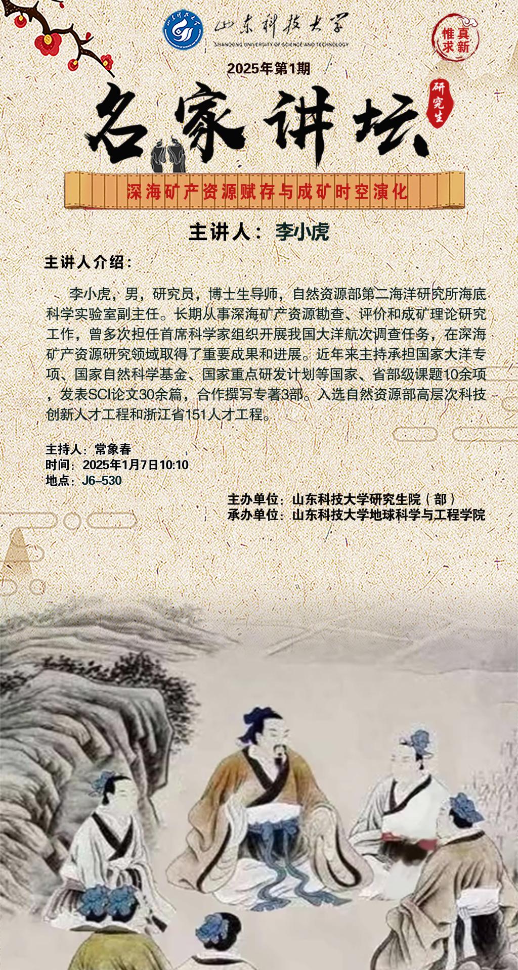 “名家讲坛”2025年第1期:深海矿产资源赋存与成矿时空演化(总1006期)