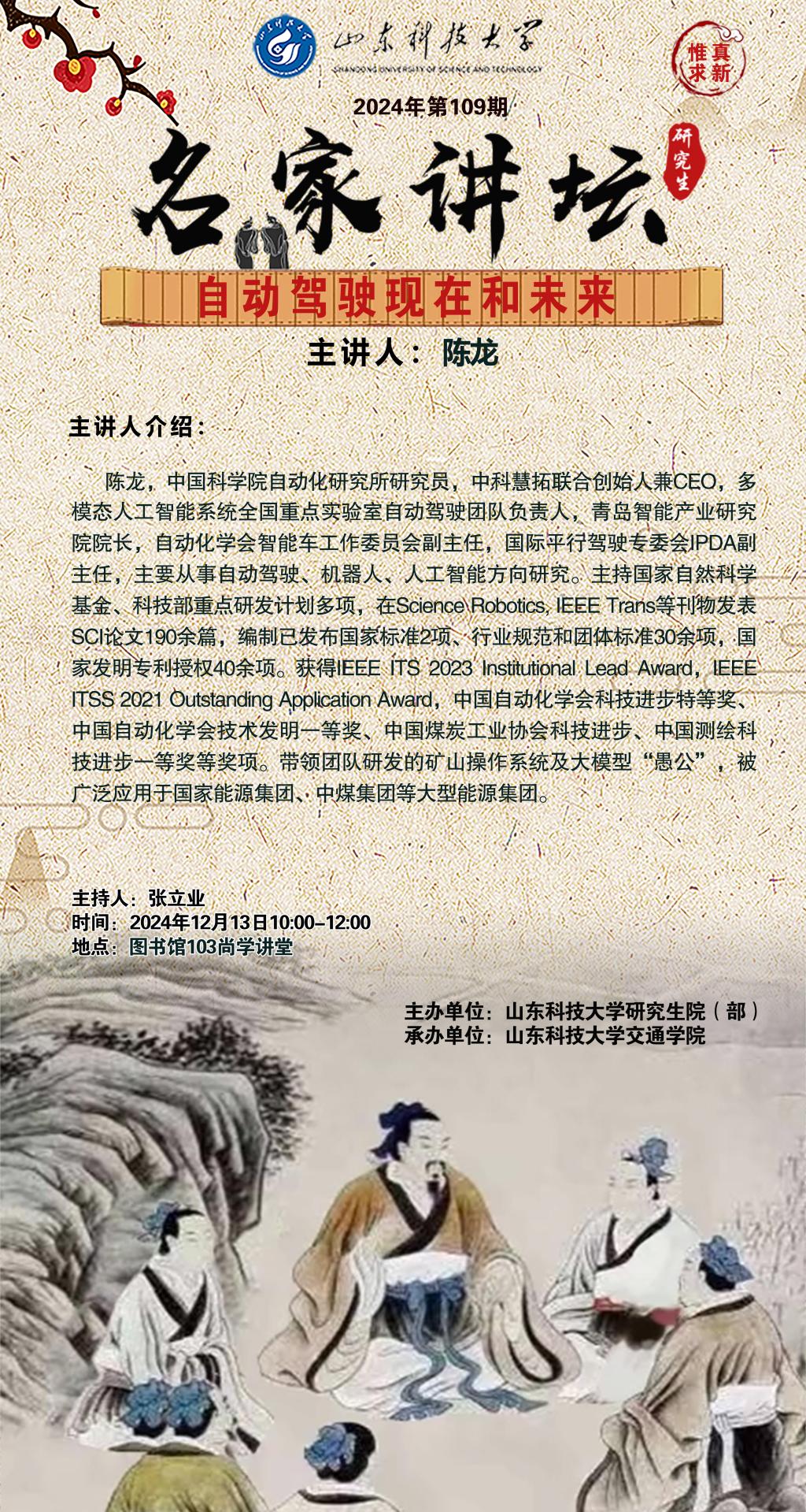 “名家讲坛”2024年第109期:自动驾驶现在和未来(总1003期)