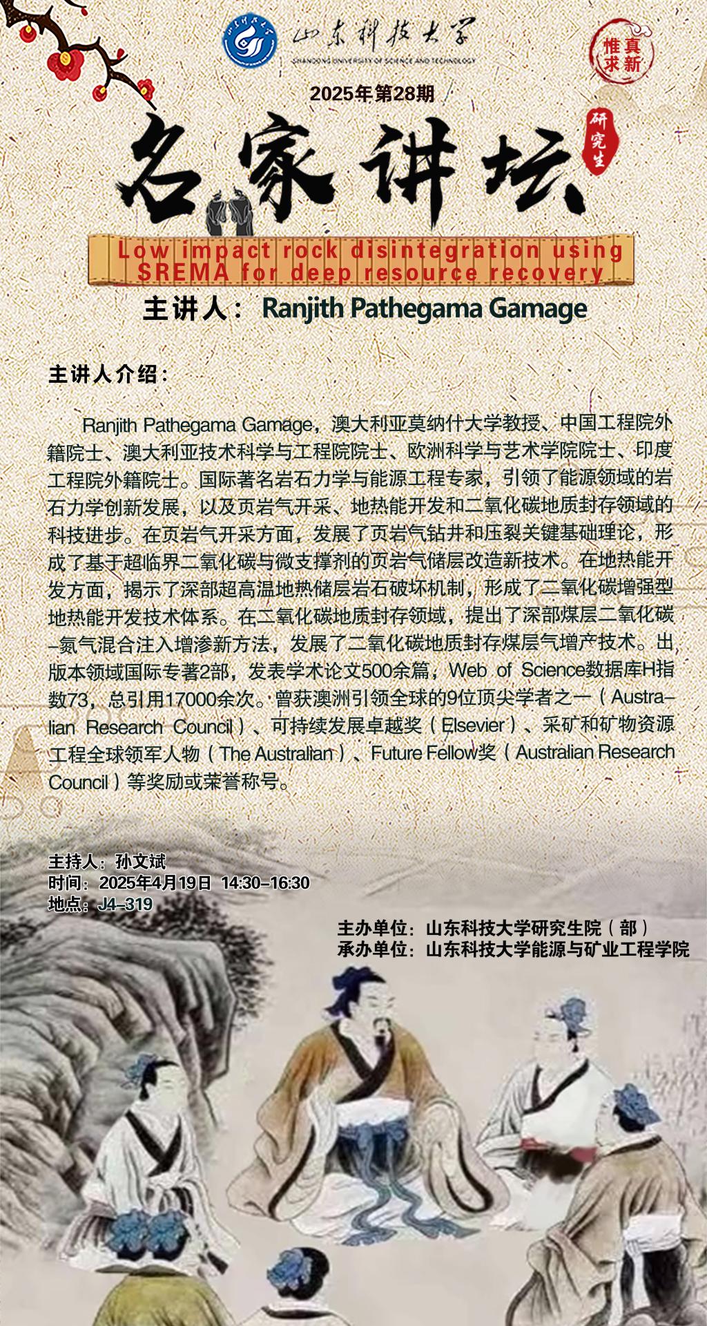 “名家讲坛”2025年第28期:Low impact rock disintegration using SREMA for deep resource recovery(总1033期)