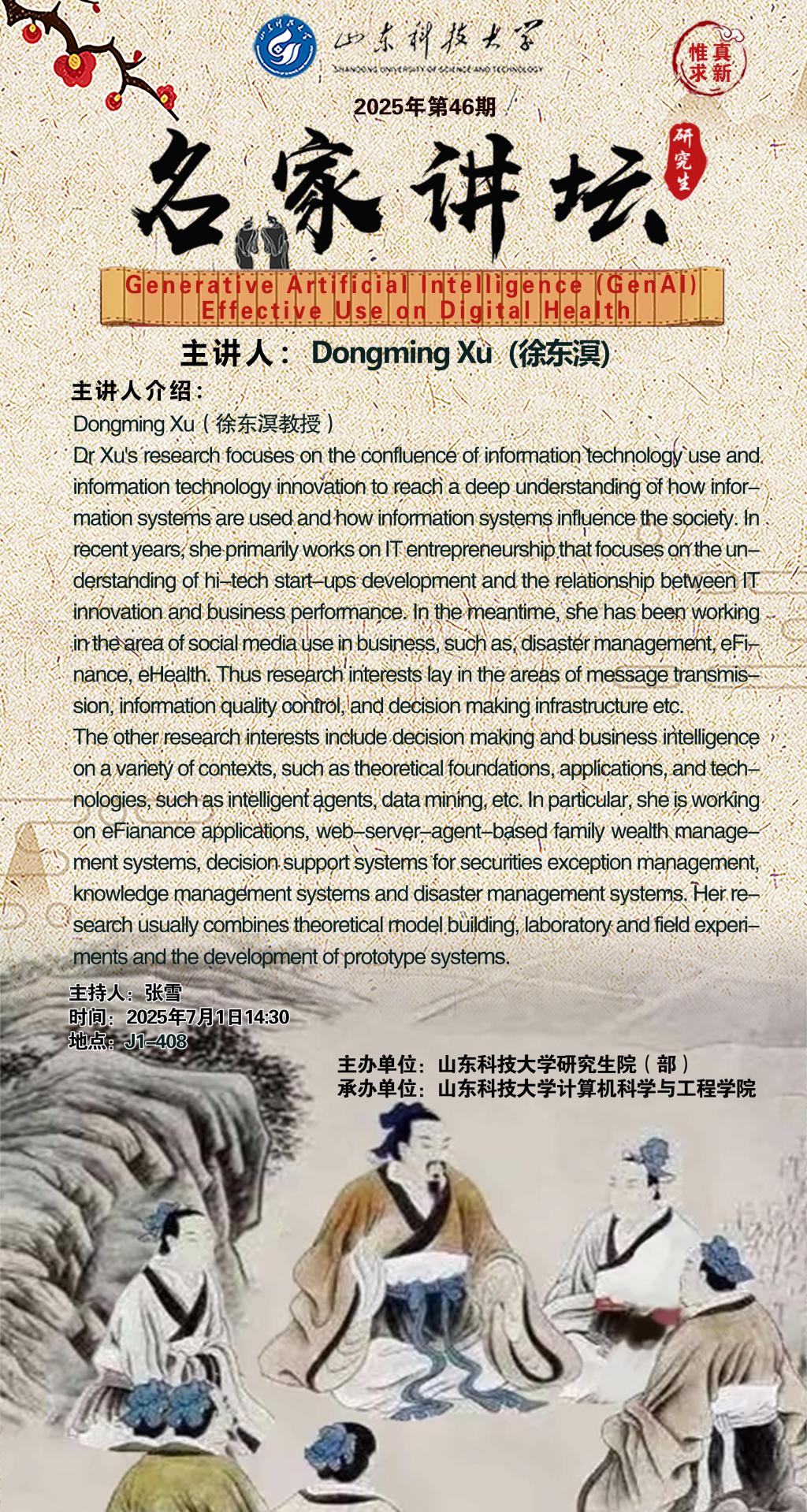 “名家讲坛”2025年第46期:Generative Artificial Intelligence (GenAI) Effective Use on Digital Health(总1051期)