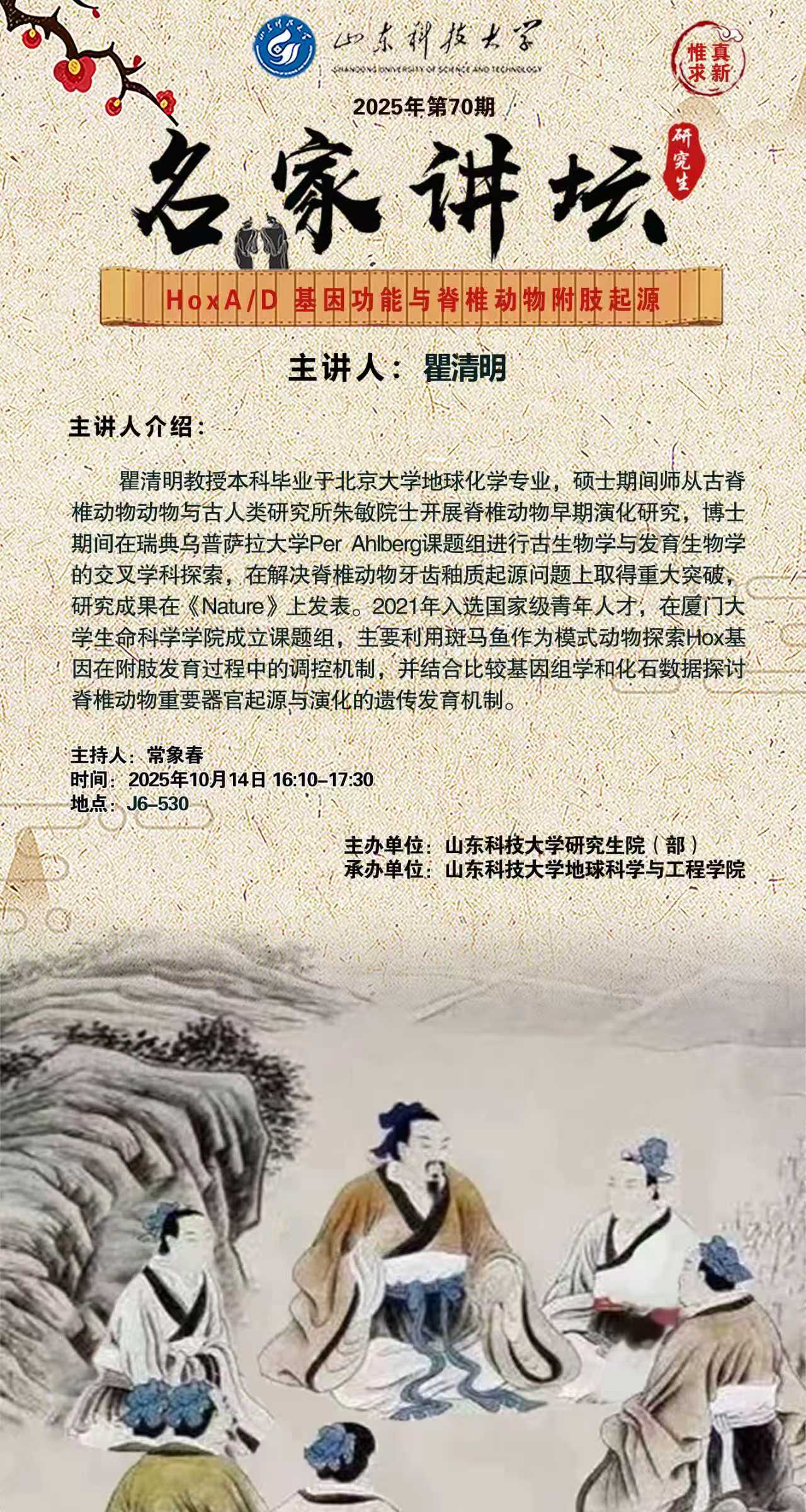 “名家讲坛”2025年第70期:HoxA/D 基因功能与脊椎动物附肢起源(总1075期)