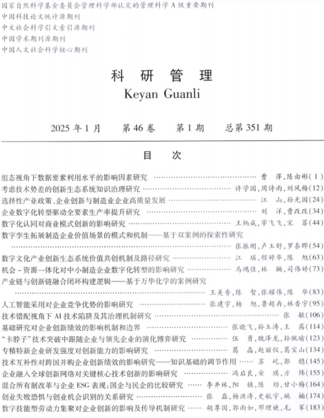 近日,ac米兰官网中文网站经济管理学院王炳成教授团队在《科研管理》发表题为“数字化认同对商业模式创新的影响研究”的文章。